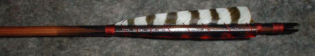 Welcome to the arrow page. Here you can find a sample of the arrows we make. We make custom arrows in house. All arrows are made to order, and take 4 to 6 weeks for delivery. You can choose the length, spine weight, and shape and color of fletching, as well as colors of stain for the shafts. Tapered and Footed shafts are also available, e-mail for pricing.