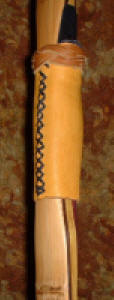 Welcome to the bow page. Here you can find a sample of the bows we normally carry. The leather wrapped handles, with the decorative leather turks-head knot work is the standard grip for the bows we make in house, and is optional on other bows.. Its looks good, and feels good in the hand. We sell a number of different styles of traditional long bows made by a variety of bowyers, and finished in house. Not all pull weights are available in all styles. If there is a style that you want, and a particular pull weight, e-mail us and we will try to get it for you.